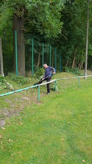 So wurden Gestrüpp und Äste entfernt, Hecken geschnitten, ein Weg zum Flutlicht angelegt, der verunkrautete Sandhaufen beseitigt und unser Flutlicht repariert.